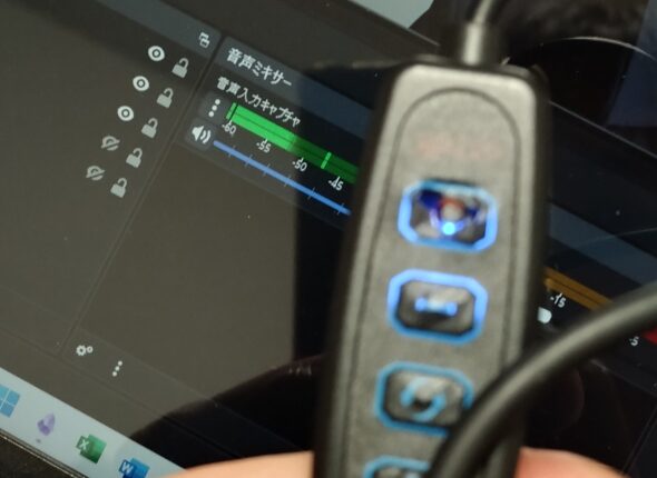 マイクの音声ケーブルを、LEDライトのコントローラーにくっつけると、大きなノイズが断続的にPCに入力されてしまうことが分かりました。