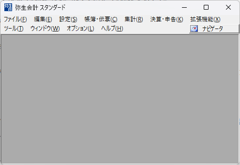 次回の弥生会計起動後は、すべて閉じた状態を保持したまま起動するので、グレー一色でデータもメニューも何も表示されない画面が開いてしまったということです。