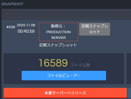 真っ白になる前の日の定期スナップショットを、「本番サーバーへリリース」すれば、正常に動いていたときの状態に戻せます。
