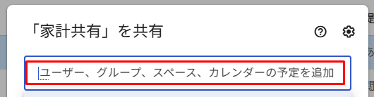 ウインドウが開くので、その入力フォームに、共有したい相手のメールアドレスを入力します。