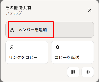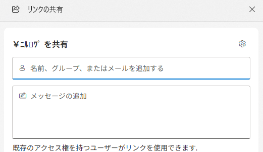 その後、 Google ドライブと同じような方法で、メールアドレスを入力して、共有を開始します。