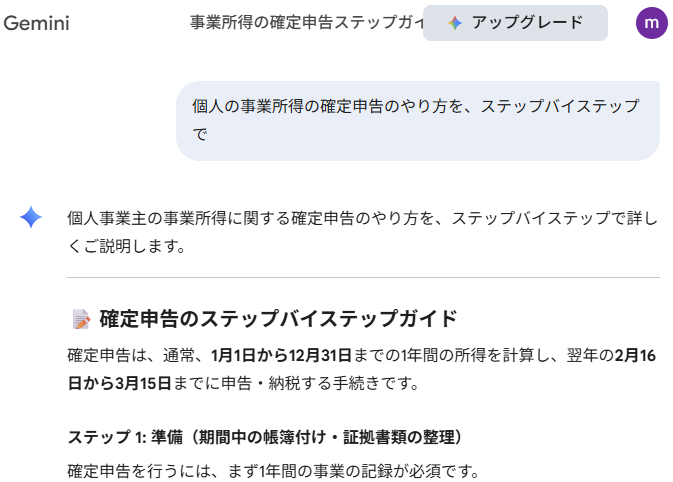 ほんとうは、書籍で大枠をつかんでいただくことをおすすめしていますが(3カ月サポート以上の方には、市販の確定申告の解説書を差し上げています)、時間がなく、要所要所だけ調べたいときは、AIやチャットボットが便利です。
