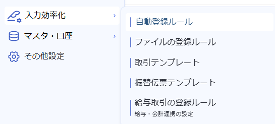 勘定科目、金額(2つ以上の意味がある場合は、取引テンプレート)、備考欄を設定して、「自動登録ルールの編集」にチェックを入れて、ルールを設定、保存します。