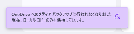 そして、「1 個のメディア ファイルを OneDrive にバックアップする」のスイッチをOFFにします。
