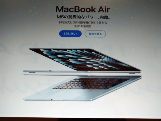 MacBook Airは、今朝、発表されたことをXのモロトメジョーさん(著書、2冊読んでいます! ブログも)のポストで知りました。